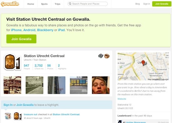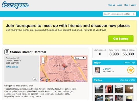 Mooi gedaan. Punt is alleen dat Foursquare een kleine maar zeer actieve groep gebruikers kent die al bijna twee jaar overal (en vooral op stations, het zijn OV.-gebruikers in NL) incheckt.