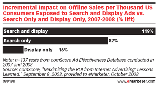 Hier staat een onderzoek van comScore in dat laat zien dat search met daarbovenop display tot betere offline conversie leidt: