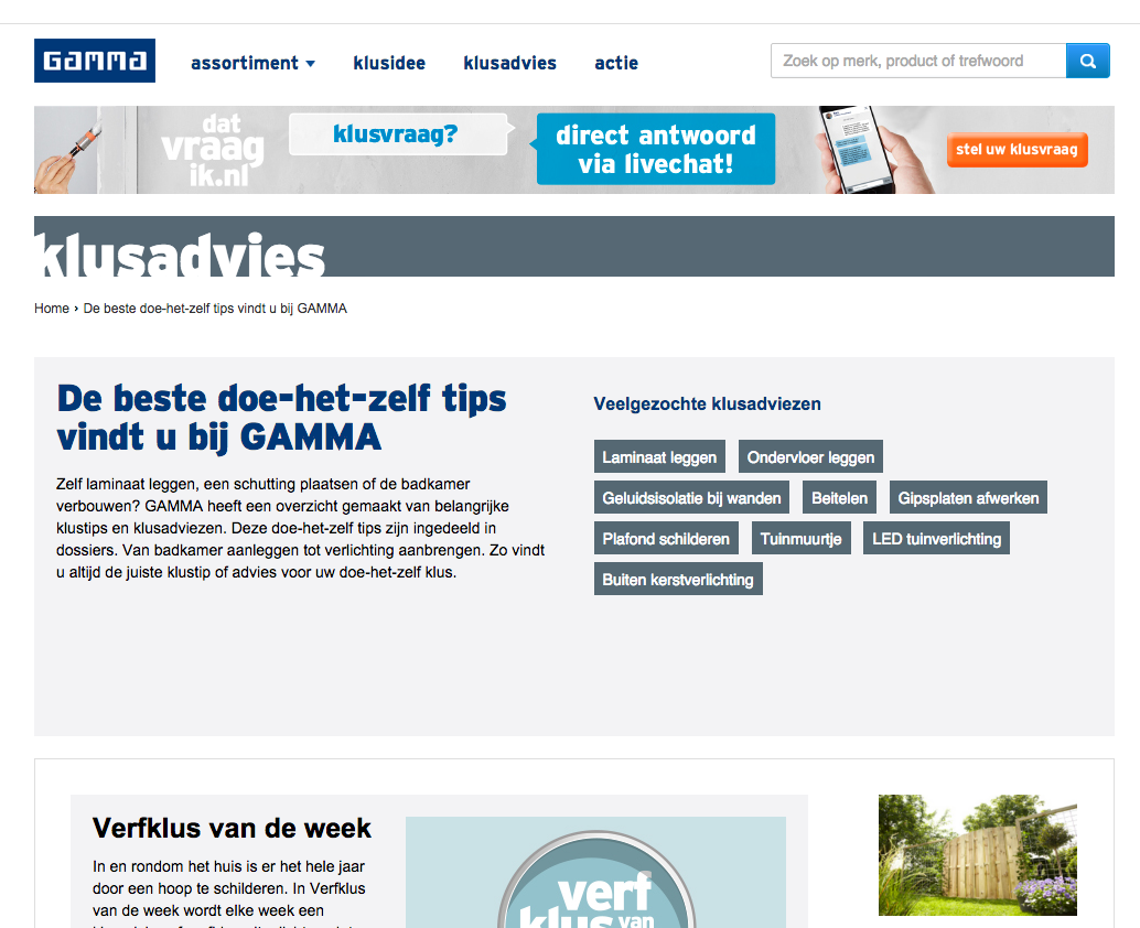 Je websitebezoekers willen wel reageren op je content, maar vinden dit teveel moeite of gedoe omdat ze bijvoorbeeld eerst een account aan moeten maken. Maak het voor die bezoekers gemakkelijk om te reageren op je content of om vragen te stellen. Maak bijvoorbeeld een soort klantenservice voor je content. Gamma geeft hierin het goede voorbeeld. Via een chatfunctie kunnen websitebezoekers bij de Gamma terecht om een antwoord te vinden op al hun klusvragen.