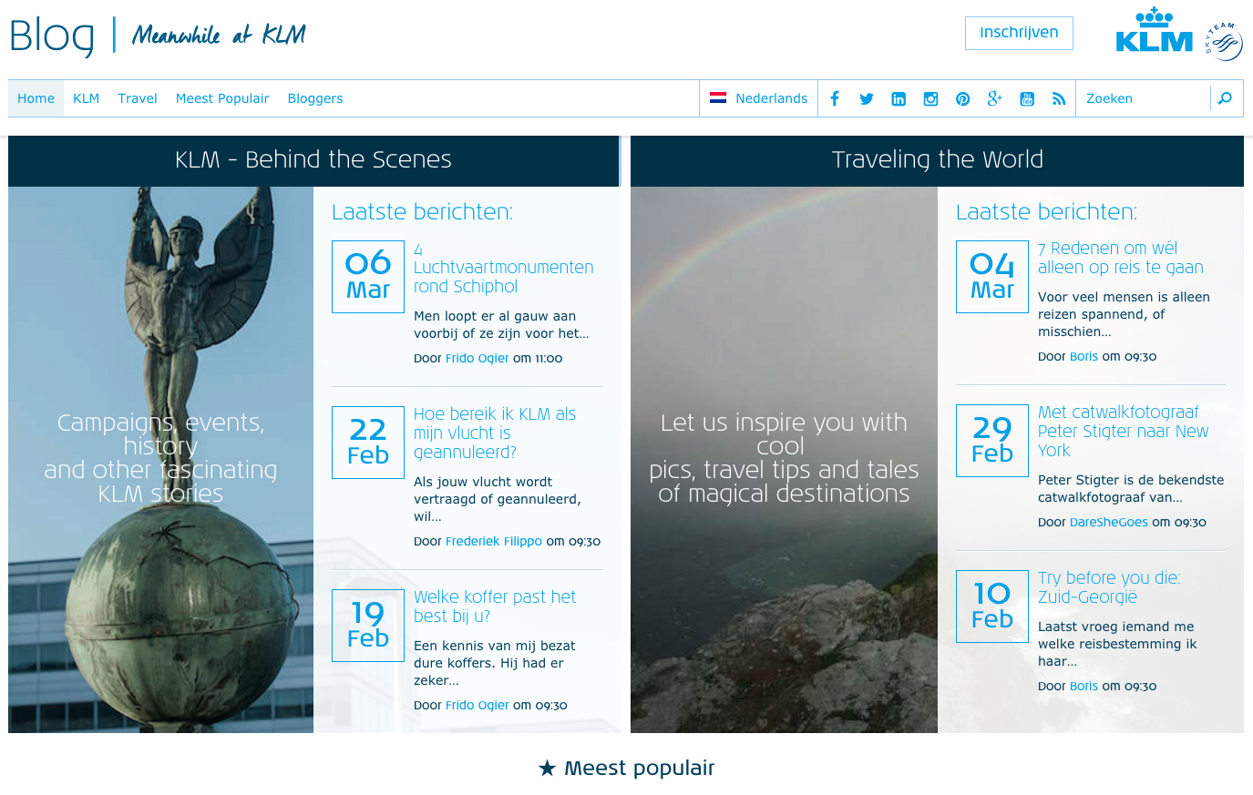 Kijk bijvoorbeeld naar de blogs van KLM. Die worden geschreven door allerlei verschillende personen, maar door thema’s en series te gebruiken zorgt KLM voor consistentie. Denk aan thema’s als ‘weird places’, ‘citizens of the airport’ en ‘behind the scenes’. Websitebezoekers zijn nieuwsgierig naar deze thema’s en gaan op zoek naar meer blogs.