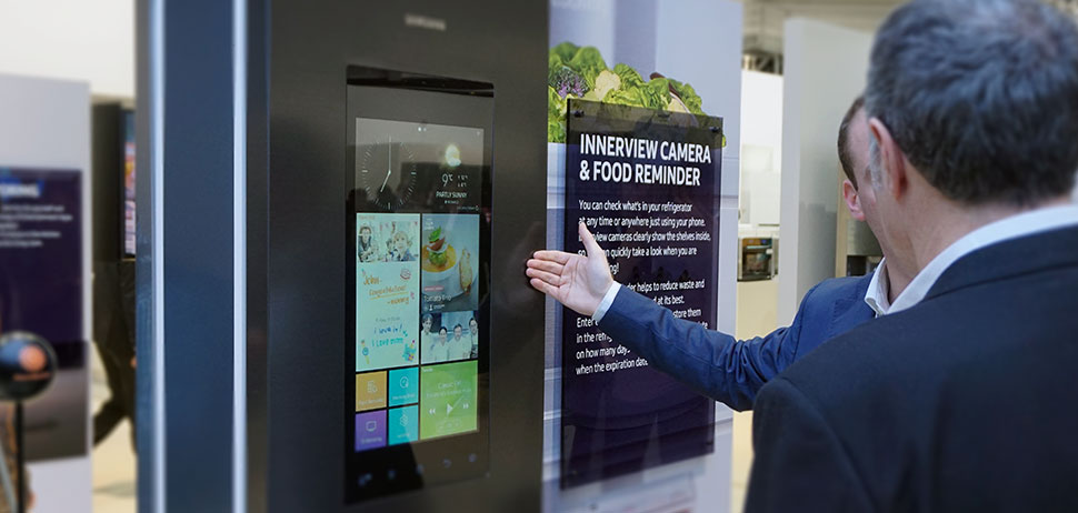 De nieuwe koelkasten van Samsung zijn onderdeel van het Smart Home-concept dat vorig jaar is aangekondigd en als doel heeft alle producten slimmer te maken door ze met internet te verbinden. De koelkast van Samsung heeft een groot touchscreen op de voorkant die in verbinding staat met internet. Het scherm biedt mogelijkheden zoals het afspelen van muziek, bekijken van nieuws en weer, mirroring van de TV en het achterlaten van notities direct op de koelkast of via een smartphone.