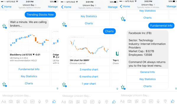 Voor ondernemers met een portfolio is Finance Bot een handige robo-buddy om op de hoogte te blijven van aandelen. Je kunt specifieke aandelen volgen, updates krijgen en vragen om meer gedetailleerde informatie. Niets te diepgaand, maar genoeg als je geen full-time broker bent.