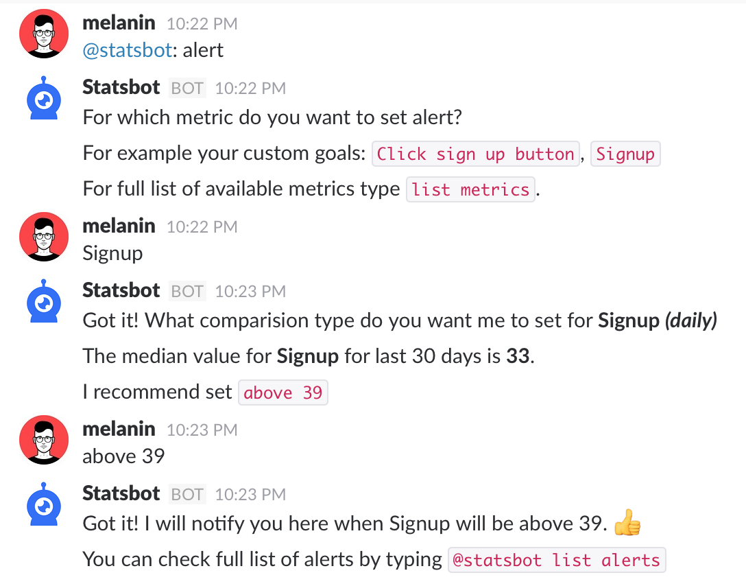 Statsbot is een verfrissende nieuwe manier om je online analytics te verkennen. Door het te verbinden met Google Analytics, New Relic of Mixpanel, kun je simpele en directe vragen stellen over je analytics en directe antwoorden ontvangen. Zo kan je nu vanuit Slack je data analyseren, rapporten aanmaken en – mijn favoriet – een notificatie krijgen als er iets gebeurt. Een ongebruikelijke piek of daling in web traffic? Statsbot laat het je weten.