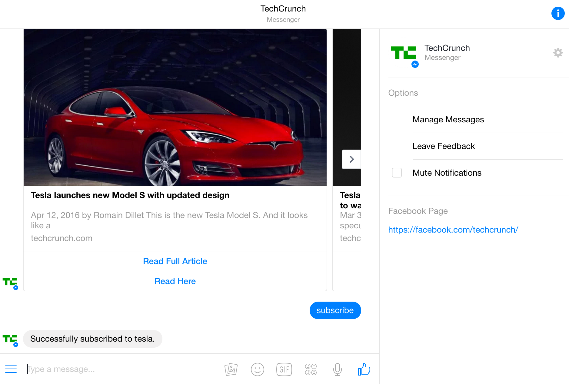 Het is belangrijk om op de hoogte te blijven van industrienieuws, maar dit kan gemakkelijk vergeten worden op een drukke dag. De TechCrunch Chatbot helpt je hiermee. Ontvang dagelijkse updates van de meest populaire artikels of kies ervoor op de hoogte te blijven van specifieke topics die je interesseren. Ik krijg bijvoorbeeld specifieke updates over livechat-gerelateerd en Tesla-nieuws. Je kunt ook meer informatie van de chatbot vragen over een bepaald bedrijf of persoon.