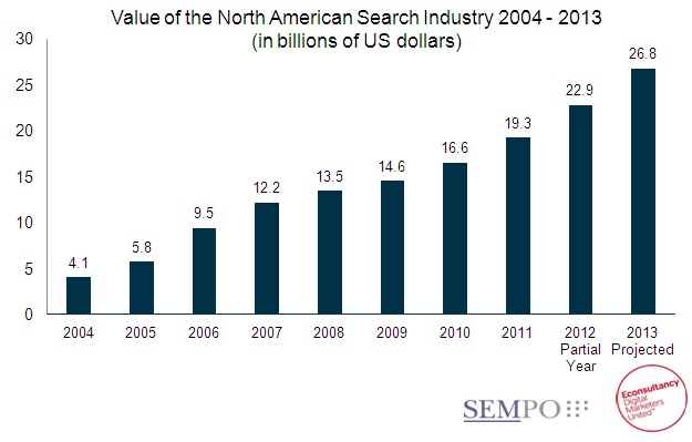 Na een vlakkere groei in 2008-2010 kent zoekmachinemarketing in 2012 de grootste absolute toename ooit. Dat concludeert Econsultancy in het State of Search Marketing Report 2012 (n=900). In de 8 jaar dat Econsultancy het onderzoek uitvoert, zijn de uitgaven nog nooit zoveel gegroeid als nu. Er wordt dit jaar gemiddeld 19% meer besteed, dat is 3,6 miljard dollar meer dan in 2011. Hoewel SEM in online marketingland een van de oudste diciplines is, is de dynamiek zeer veranderlijk. Voor dit jaar geldt: “…change is afoot, with more marketers prioritizing integration and attribution in SEM.“