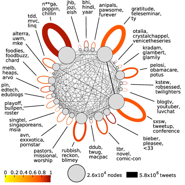 Uit dit wetenschappelijk onderzoek op basis van miljoenen tweets blijkt dat Twitter geen 1 open netwerk is, maar er sterke groepsvorming bestaan. Deze groepen hebben niet alleen een hoge dichtheid van gedeelde connecties, ook hebben zij een eigen taal. Dat concluderen de onderzoekers John Bryden, Sebastian Funk en Vincent Jansen.