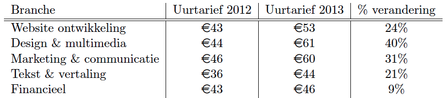 Freelancers verdienen gemiddeld 29% meer dan een jaar geleden. In een jaar tijd is het gemiddelde uurtarief gestegen van 42 euro naar 54 euro per uur. In de marketingbranche zijn de freelance tarieven gestegen van 46 euro naar 60 euro, een stijging van maar liefst 31%. Dat bljkt uit offertedata van het platform hoofdkraan.nl.