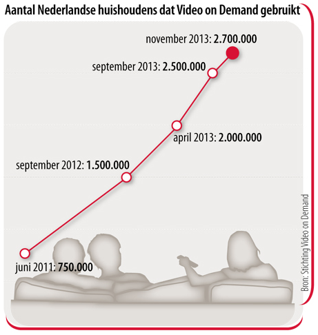Aantal video on demand-huishoudens gestegen naar 2,7 miljoen