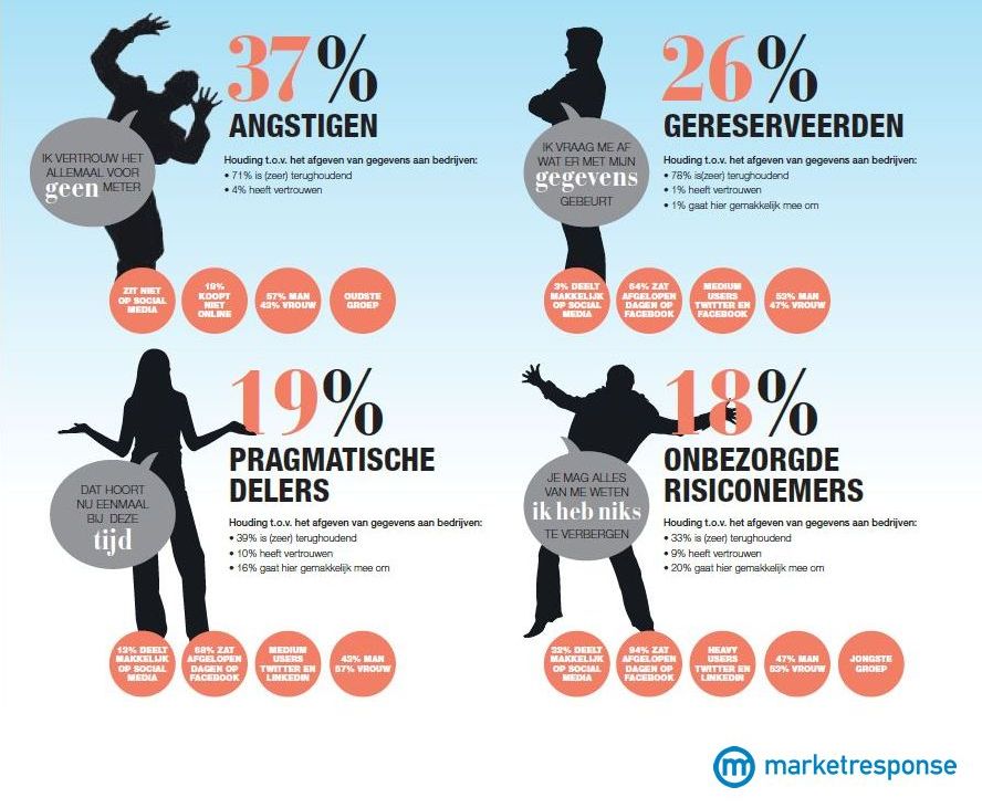 Hoe staat het met het vertrouwen van consumenten als het gaat om het afstaan van hun persoonlijke gegevens aan bedrijven? MarketResponse heeft dit onderzocht en het resultaat is voor het bedrijfsleven niet erg gunstig. Dat vertrouwen is namelijk niet erg groot. Sterker nog, er heerst veel wantrouwen.