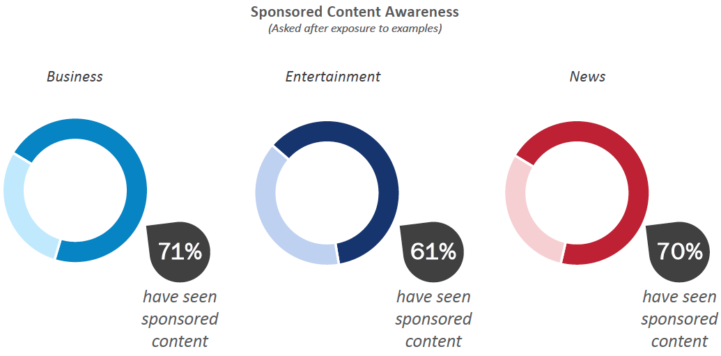 Uit dit onderzoek blijkt dat naamsbekendheid, betrouwbaarheid en de relevantie van het onderwerp van cruciaal belang zijn voor de waardering van in-feed gesponsorde content. “Getting Sponsored Content Right: The Consumer View” toont aan dat een positieve beoordeling van de geloofwaardigheid van nieuwssites met 33% stijgt, als ook de gesponsorde content geloofwaardig over komt.