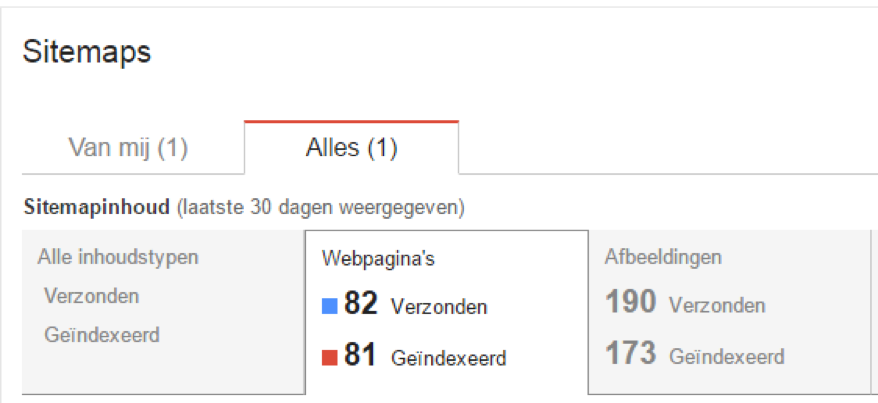 Naast de berichten zijn de data bij Google-index en Crawlen ook erg belangrijk (en interessant) om regelmatig te monitoren.