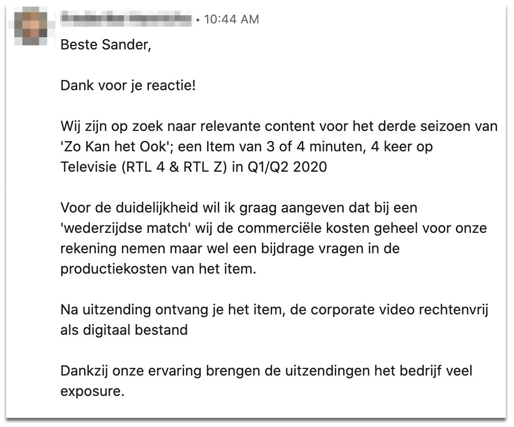 Je vindt op Eventbrite interessante evenementen door heel Nederland. Er zijn trouwens ook regelmatig radio- en tv-programmamakers die je zouden kunnen benaderen. Ze zeggen dat ze je bedrijf interessant vinden, maar vragen wel om mee te betalen aan de productiekosten.