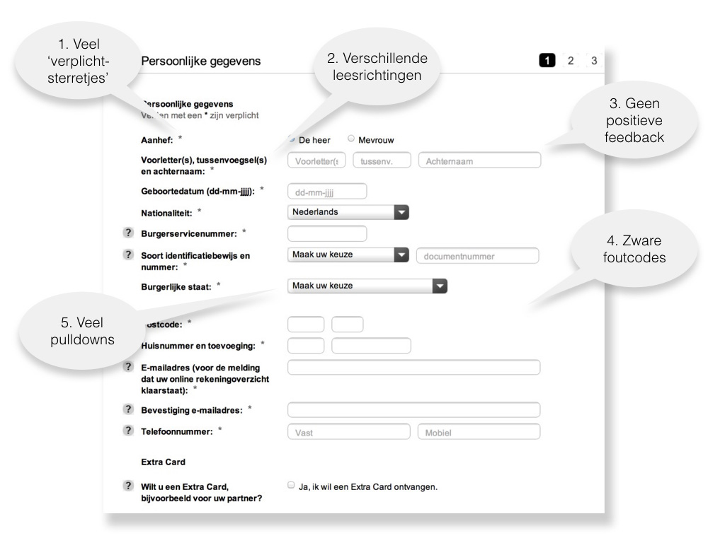 (of Mastercard of yourmastercard.nl/ dan zie je eigenlijk dat er heel weinig verschil is. IPV ervoor staan de titels van elk formulierveld erboven. Dan heb je het wel gehad. Desktop convwersie kan ik niks over zeggen want staat niet in het artikel zoals ik het door de klant heb laten goedkeuren maar ga er maar vanuit dat die prima in orde is. ! van de redenen dat ik eht belangrijk vond om mobile aan te stippen is dat er zoveel onzin over wordt gemeld. Namelijk dat het ‘normaal’ zou zijn dat mobile forms een lagere conversie hebben dan desktop. Bijvoorbeeld omdat mensen die mobile gebruiken, onderweg zijn en wienig tijd hebben. Excuses trouwens voor late reactie maar dit artikel stond ónverwacht live en dat moest ik eerst nog even terugkoppelen