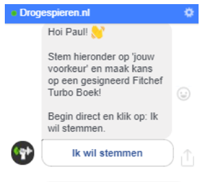 Uiteindelijk zijn er 2500 stemmen geconverteerd in 1100 pre-orders! Wat het mooie is van chatbots zijn de hoge openratio’s (97,8%) en clickratio’s (52,3%).