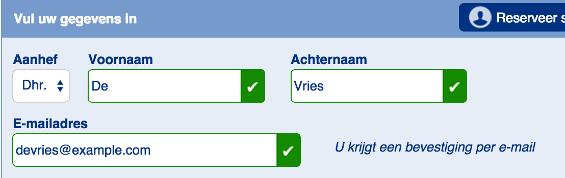 Of beter nog: gebruik eens “goedmeldingen”, zoals T-Mobile of Booking.com. Dat ziet er toch een stuk sympathieker uit en verhoogt de zogenaamde ‘self-efficacy‘, waardoor mensen het gevoel krijgen dat ze de hindernis (het invullen van een formulier) goed kunnen doorlopen. Zo ben je klaar voor de feestdagen.