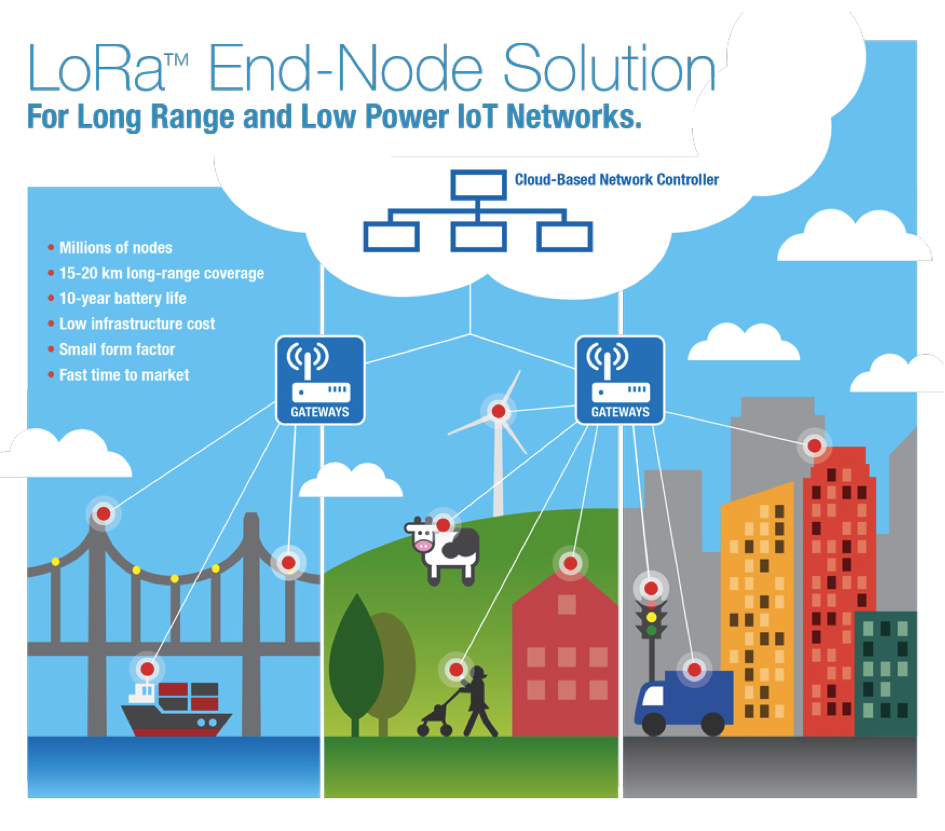 (Het LoRa-netwerk uitgelegd door Microchip, ’s werelds eerste en enige bedrijf dat het LoRaWAN 1.0 certificaat heeft.)