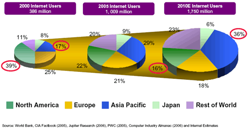 Cijfers zijn inderdaad gexetrapoleerd op basis van voorspellingen van World Bank, CIA Factbook, Jupiter Research en PWC.