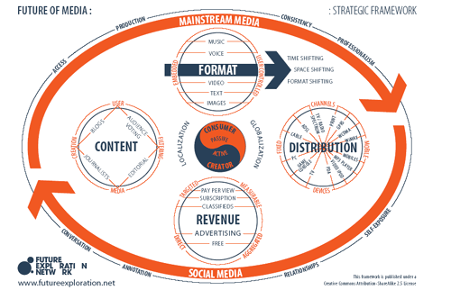 Hans Mestrum verwijst naar het recente rapport Future of Media (pdf) van Future Exploration Network over de toekomst van mainstream en social media. De belangrijkste veranderingen van de media volgens het rapport: