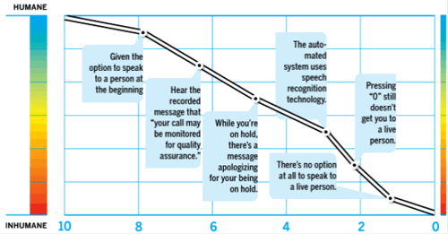 Vandaag kwam ik op de weblog Bankwatch een aardig plaatje tegen over hoe klanten zich voelen bij de telemarketing support van banken (uiteraard ook toepasbaar in andere branches).