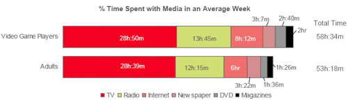 Uit een onderzoek van Universal McCann, met de titel Media in Mind (PDF), blijkt dat console gamers intensieve media gebruikers zijn en meer dan gemiddeld tijd besteden aan televisie, internet en DVD’s. Console gamers besteden gemiddeld per week ruim 5 uur meer aan media consumptie dan volwassenen. Niet alleen wordt er meer televisie gekeken binnen deze doelgroep, er wordt ook meer tijd besteed aan radio en internet.