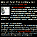 Eén van de mogelijkheden is een prijsvraag op te stellen en deze prijsvraag aan te melden bij de relevante sites. Zo hebben we afgelopen week vanuit Blogads.nl een prijsvraag opgesteld om meer bezoekers te trekken naar de weblog mobielbreedband.nl. In dit geval hebben we er voor gekozen om een Palm Treo weg te geven voor de bezoeker die de beste tip instuurt om mobiel te werken met mobiel breedband.
