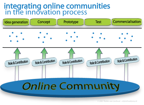 In de vorige posting is kort stilgestaan bij de achtergrond van het integreren van bestaande online communities in het innovatie proces. In deze posting zal een model worden beschreven om deze integratie verder vorm te geven.