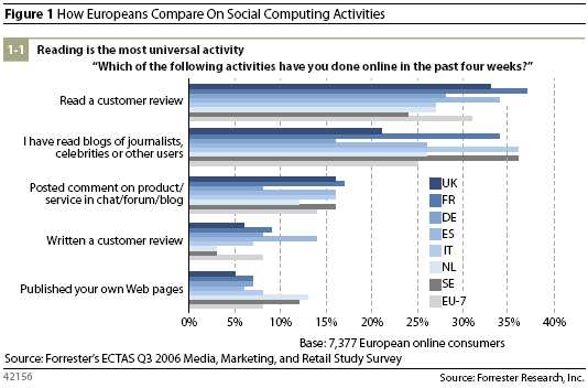- Reading peer reviews is the No. 1 Social Computing activity, with nearly one-third of European online consumers taking part in that activity.