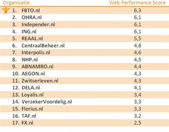 Hoewel FBTO niet de best beoordeelde website heeft, is de verzekeraar met 22,5% van de respondenten toch de overtuigende winnaar van het onderzoek. Vertrouwen in de aanbieder en de vindbaarheid van de website zijn in dit geval verantwoordelijk geweest voor deze prestatie. Vooral aan het tweede element heeft FBTO veel gehad, want het zijn concurrenten als Independer en ING die hoger scoren met de website, maar door minder respondenten worden bezocht.