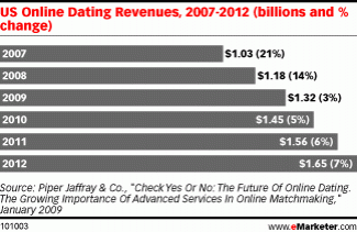 “Online dating seems like one of those things everyone did when the Web was new, then dropped after a while. In fact, the percentage of Internet users in the US who visit online dating sites is down, but online dating revenues are up.”