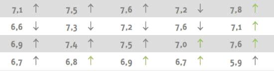 De meeste providers verbeterden zichzelf: groene pijlen geven een stijging van meer dan tien procent aan.