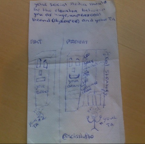 Tijdens mijn ‘vrijdagmiddag-ik-ga-er-zo-van-tussen-moment’ stelde ik mijzelf de merken voor als wolkenkrabbers, in dat geval kunnen we de social media platformen zien als de lift(en) die de doelgroep gemakkelijk, snel en persoonlijk naar de juiste (ver)persoon(lijking) per ‘verdieping’ brengen. Een vrijdagmiddag Doodle om te delen, of niet? Roept u maar! Hier het origineel.