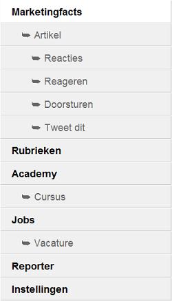 In het eerste gesprek met appnormal.com hebben we aangegeven dat we het bij Marketingfacts belangrijk vinden dat de informatie (artikelen, vacatures, informatie omtrent events) snel en makkelijk te lezen is. Daarnaast is social sharing ook een groot item. Het plaatsen van comments en het delen via Twitter zijn daar enkele voorbeelden van. Er zijn nog een paar andere ideeën voor functionaliteiten, hier later meer over.