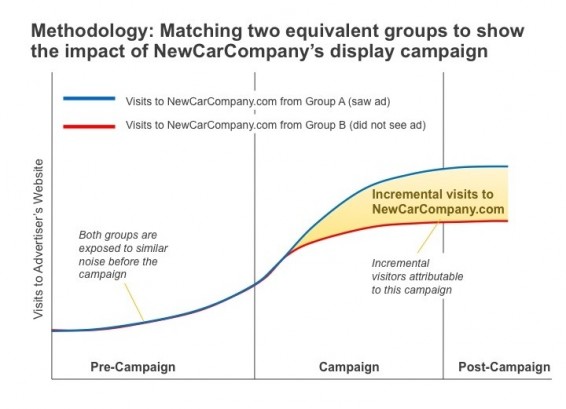 Om statistisch betrouwbare uitspraken te doen over het effect van een display campagne vergelijkt Google twee grote groepen, beiden van duizenden gebruikers. De ene groep heeft de advertentie wel gezien, de andere niet. Het online gedrag voor, tijdens en na de campagne wordt geanalyseerd. Volgens Google is de steekproef ongeveer tien keer groter dan bestaande standaard consumentenpanels.