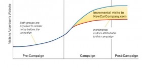 Omdat de groepen zo groot zijn, kunnen significante verschillen tussen de groepen met grote zekerheid worden toegeschreven aan de display campagnes. Anders gezegd: duidelijke verschillen in sitebezoek en zoekgedrag kunnen geen toeval zijn als de panels dusdanig groot zijn. Het idee is dat op die manier ook externe ruis (zoals het effect van offline campagnes) kan worden uitgesloten. Die ruis is bij beide groepen als het goed is gelijk. Het enige verschil tussen beiden is het al dan niet blootgesteld zijn aan de campagne. Overigens blijft een mogelijk extra versterkend effect (synergie) van offline en online blootstelling hier buiten beschouwing.Onderstaande afbeeldingen visualiseren de invloed van display op sitebezoek en zoekgedrag :