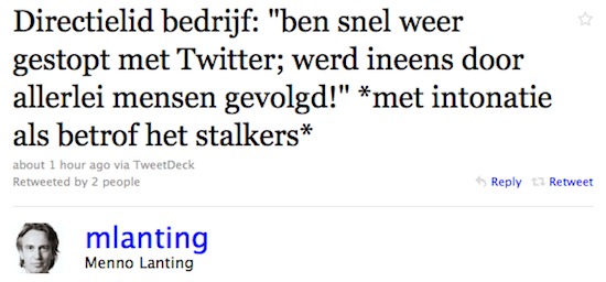 De Conversation Manager is een aanrader voor de marketeer die zich afvraagt wat hij met social media moet doen, maar ook voor het directielid uit deze tweet afgelopen zondag van @Mlanting en voor de vele anderen die er net zo overdenken maar het niet benoemen 😉