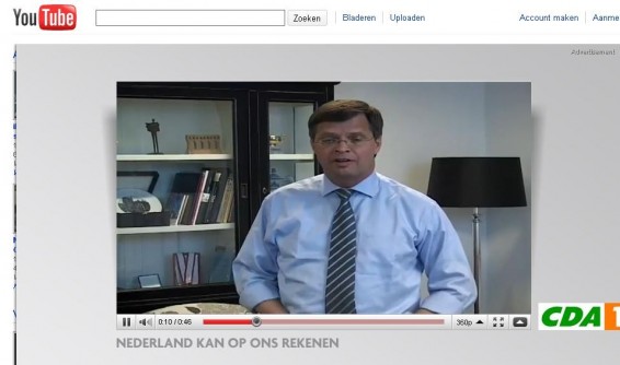 “Nederland kan op het CDA rekenen. […] Het CDA kan rekenen. […] Nederland kan op mij rekenen. Ik reken op u. Stem CDA.” Aan het woord demissionair minister-president Jan-Peter Balkenende, in een filmpje op YouTube, vanaf vandaag 24 uur lang te zien op de homepage van YouTube. Het filmpje is rechtsboven gepositioneerd, maar wie erop klikt krijgt een take-over voor zijn neus: op volledige schermbreedte spreekt JP je toe met CDA-verkiezingsretoriek. Immers, de verkiezingen zijn morgen al.