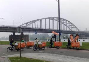 Volgens de Gelderlander keken Arnhemmers onlangs vreemd op van auto’s, bakfietsen en voetgangers met grote oranje borden. Het blijkt om een campagne van Nationale Nederlanden te gaan.
