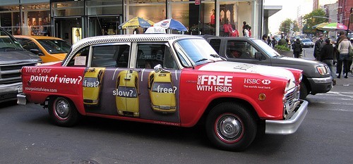 We gaan even over de grens. In New York gaf HSBC het bureau Renegade de opdracht om op 80.000 New Yorkers een effect uit te oefenen en een positieve indruk achter te laten bij ca. 15 miljoen mensen. Er reden in New York HSBC taxi’s rond, die binnen Manhattan New Yorkers gratis vervoerde. Het leverde HSBC veel publiciteit op (ca. 18 miljoen PR-impressies). HSBC omschreef de actie als volgt: “The BankCab was one of the most successful and cost-effective marketing programs in HSBC’s history.”