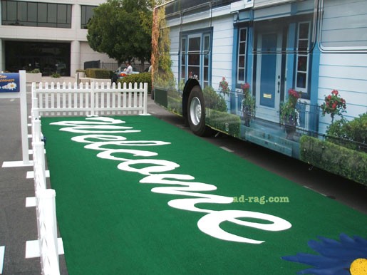 Washington Mutual zette een bus aangekleed als huis neer met daarvoor werelds grootste duurmat. De bus reisde rond en bracht de hypotheken van Washington Mutual naar het publiek toe.