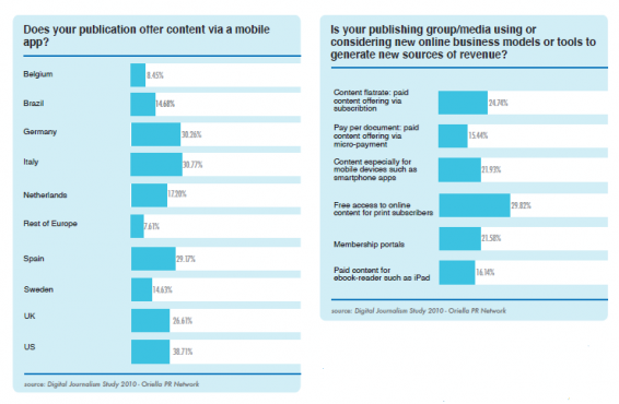 “According to our study, a quarter (25%) are using or considering implementing a business model offers content via a paid subscription. 30% are offering online access only if you have a print subscription, and nearly a quarter (22%) are using or looking into paid content via smartphone apps.”