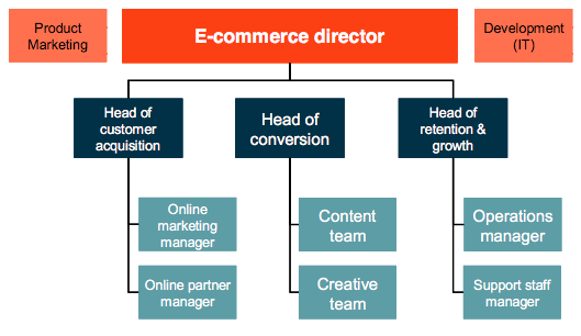 Voor andere dan de transactionele e-commerce sites is het aannemelijk dat teams anders zijn ingedeeld. Teams zijn vaak een onderdeel van marketing of IT, of opereren onafhankelijk of als direct kanaal.