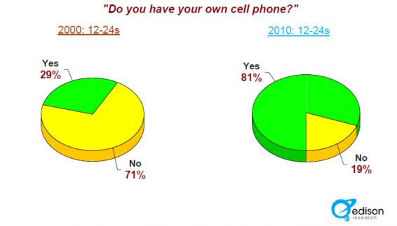 In het rapport (het is gesponsord door Radio-info.com) vind je onder andere heel veel onderzoeksresultaten over en aanbevelingen die relevant zijn voor de radio-industrie, maar staan ook vergelijkingen in bijvoorbeeld mobiel telefoonbezit zoals je hieronder kunt zien: