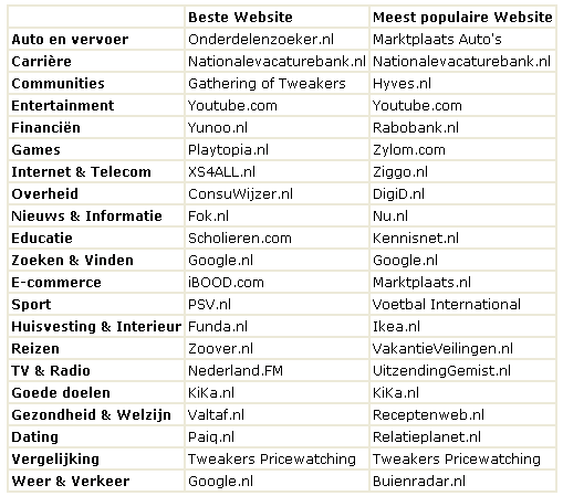 Ik ben toch benieuwd naar de officiële cijfers en gemiddelden. Jammer dat dit niet gepubliceerd wordt. Daarnaast; hoe objectief zijn de stemmen? Winnaar PSV.nl heeft natuurlijk een grote groep supporters die een maximale stem geven, maar of dit ook daadwerkelijk de beste site is? Ik betwijfel het.