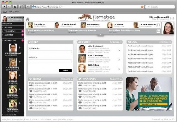 Hoe zit het met de ervaringen met social media voor intern gebruik? Menige financiële instelling maakt al gebruik van Yammer, een afgesloten sociaal netwerk voor organisaties. Yammer had in eerste instantie veel weg van Twitter, maar evolueert steeds meer naar een zogeheten collaborative working environment. Je kan microbloggen, bestanden delen, groepen starten, samenwerken met partners buiten je organisatie, et cetera. In Nederland zijn – voor zover ik weet – onder andere de Rabobank, ING en ABN AMRO al actief met Yammer. Niet zo zeer officieel, maar doorgaans vanuit eigen initiatief van medewerkers ontstaan. Bij Deutsche Bank hebben ze Yammer vervangen voor een eigen platform ‘The Wire’, nadat de bank het met Yammer niet eens kon worden over de veiligheid. Momenteel is Favela Fabric bij zowel ABN AMRO (Arena) als AEGON (AEGON Plein) betrokken bij het opzetten van een intern co-creatieplatform.