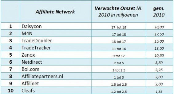 Verwachte omzetten affiliate netwerken in Nederland, zie toelichting op Affiliateblog.