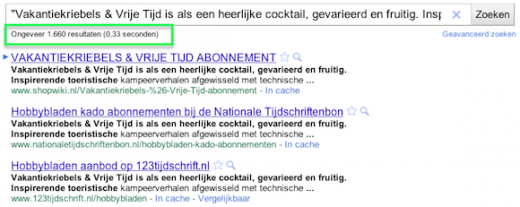 - Qua unieke content is niet alleen de body text belangrijk, minstens zo belangrijk is de uniekheid van de title tag. Een website kan ook slachtoffer worden van een duplicate content filter wanneer de titel niet uniek is. Plaats de unieke keywords per pagina voorin de titel, en de merknaam van de website achteraan. Weten welke titels Google heeft geïndexeerd? Zoek op “site:website.nl”.