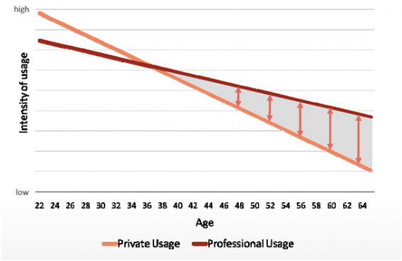 Uit het onderzoek komt verder naar voren dat communicatieprofessionals druk ervaren om “iets” te doen met social media, vanuit zichzelf maar ook vanuit de organisatie. Zelfs oudere medewerkers, die relatief weinig gebruik maken van nieuwe platformen en applicaties in de thuisomgeving worden geacht social media op het werk te gebruiken, schrijft Suzanne de Bakker op Molblog.