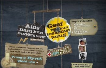 Serious Request startte de actie “leen je vrienden uit”, later ook door Artsen zonder Grenzen gebruikt als “doneer je profiel”. Hierbij kon je je facebook of hyvesprofiel uitlenen aan 3FM, die op jouw profiel één bericht per dag plaatste namens jou. Later in het proces werden dat wel verschillende berichten per account, omdat anders je timeline volliep met telkens hetzelfde bericht van mensen die aan de actie meededen.Het conversiepercentage vanaf de landingspage van deze actie tot daadwerkelijk uitlenen was 22% en #rodekruis was trending topic op twitter, wat natuurlijk fantastisch was. Van deze actie is wel geleerd, dat als Giel Beelen (met ruim 90.000 followers) de oproep via twitter doet, je wel moet zorgen dat je server het verkeer aankan… Ook aan bedrijven was gedacht. Die konden tijdens Serious Request hun homepage uitlenen. Voor de eigen homepage was een splashpagina geplaatst die direct opriep tot doneren.