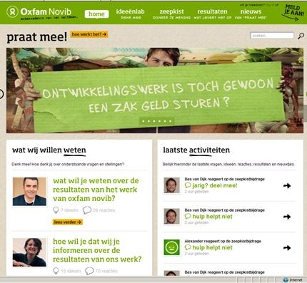 ‘Praat mee’ is geslaagd als terug- en meepraten een tweede natuur is geworden. Als de achterban voor Oxfam Novib gaat praten (op andere fora), en Oxfam Novib ook daadwerkelijk kan innoveren met input van de achterban. Het helpt daarnaast als ook de hele ontwikkelingsbranche zich meer open gaat opstellen.