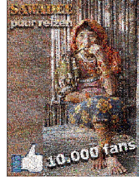 Ik ben erg benieuwd hoe Sawadee de mozaiek heeft gemaakt. Wij willen een soortgelijke poster maken voor onze website met alle fans maar op internet kan ik er geen programma voor vinden en ik denk niet dat dit handenarbeid is… Ik ben benieuwd!